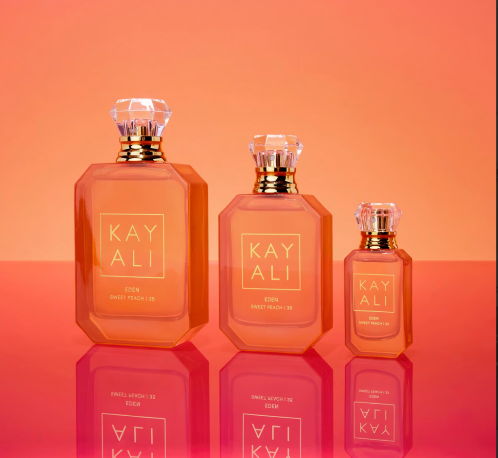 Otras se mueven desde algo más luminoso, más cercano, más fácil de habitar todos los días. Eden Sweet Peach de Kayali entra en ese territorio.